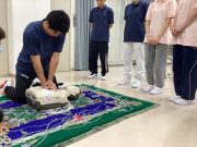 志太消防本部の救命救急士の方々に、一次救命処置(BLS)の講義をして頂きました。 学生たちは必死に心臓マッサージを行い、講義終了後には「普通救命講習修..
